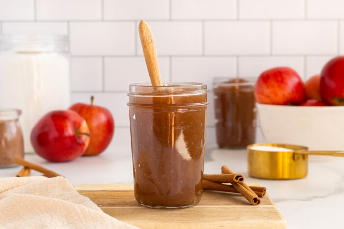 - Spoon the apple butter into sterile jars and refrigerate for up to 14 days or freeze it!