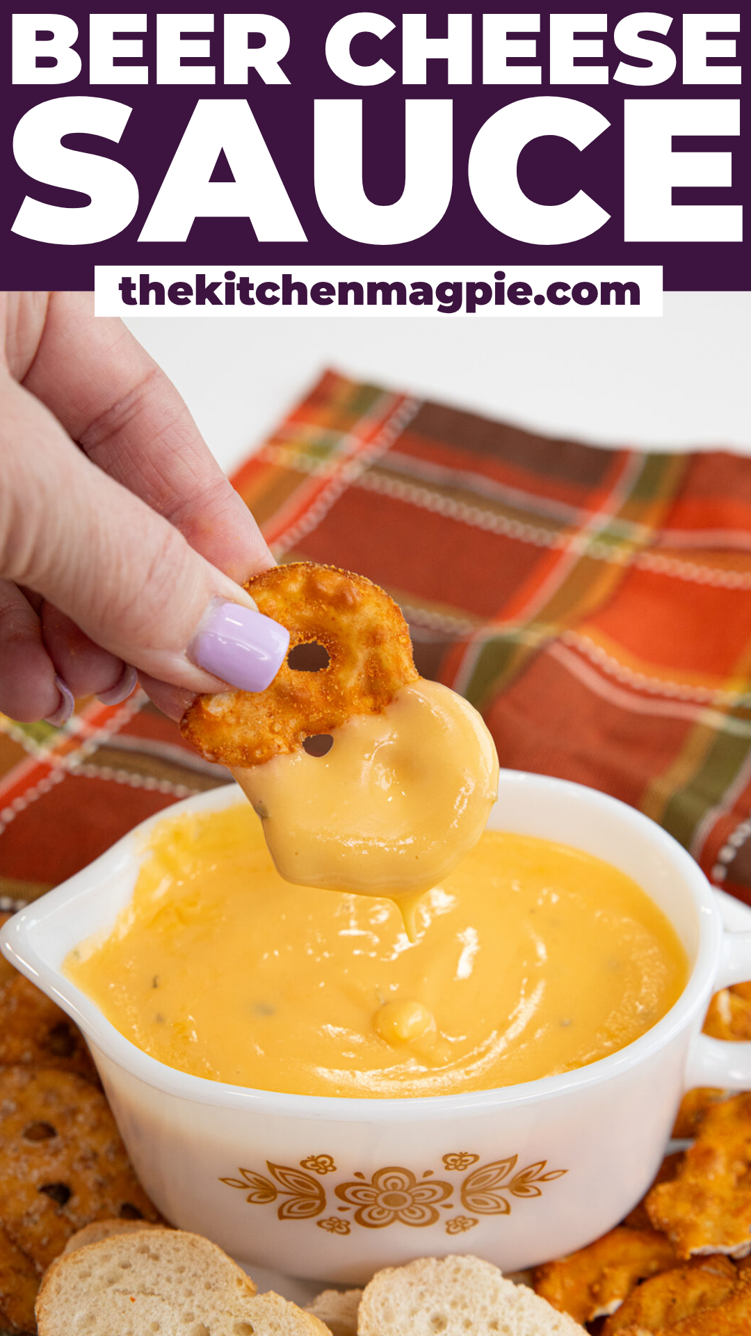 This homemade beer cheese sauce is made from scratch but takes no time at all to make. It starts with a simple roux and adds your favorite lager beer, a lot of old cheddar, and spices. This is perfect for my new Irish nachos recipe or dipping homemade pretzels.