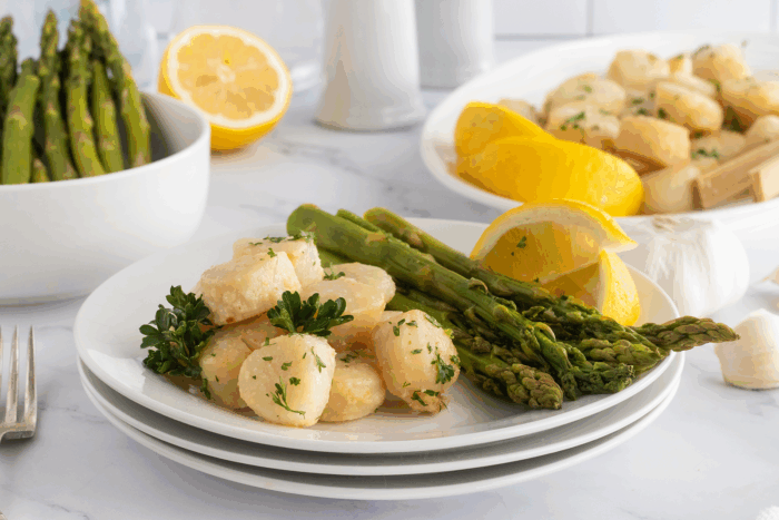 For some more great recipes using scallops, why not try making these Bacon Wrapped Scallops? Or some Chili Coconut Scallops Campfire Dinner instead? Whichever scallops you choose, serve them with some asparagus and some rice or pasta.