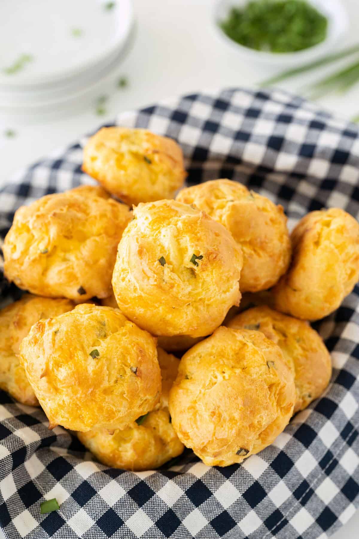 Chives: Finely minced chives add a pop of color and a subtle oniony note to your gougères.