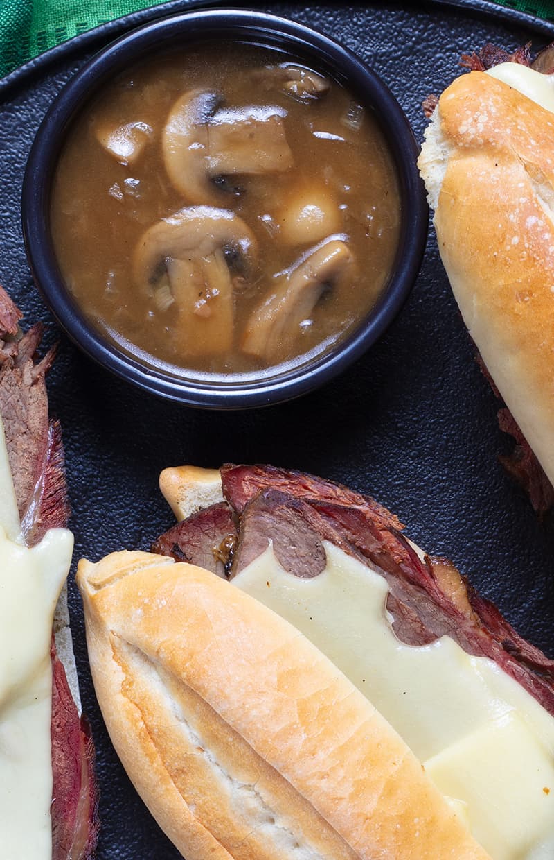 Cheesy Mushroom French Dip Sandwiches