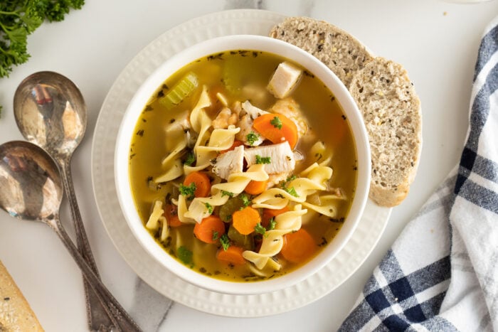 Chicken noodle soup has a reputation for being the meal to have when you’re under the weather and for a very good reason. This surprisingly simple soup manages to pack a lot into just one bowl. It’s cozy, healthy, filling, and requires very little time in the kitchen.