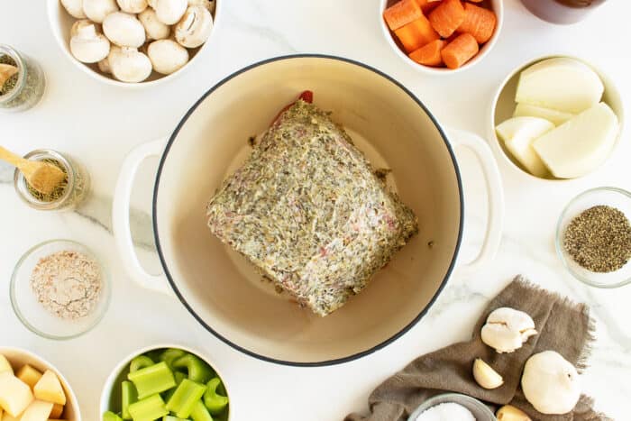 Roast: You’ll need a 3-4 pound piece of beef for this recipe, and the instructions are optimized for a cross rib roast specifically. If you choose a different cut of beef, adjust your timing accordingly.