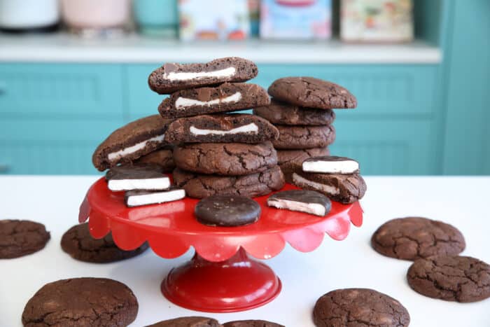 - Variations: You can make these double chocolate mint-stuffed cookies by substituting the mint chocolate chips for milk or dark chocolate chips, or give these cookies a peppermint mocha twist with some instant coffee powder! For a little extra glam, consider rolling your cookie dough balls in sugar before baking them—colored sugars will make them look especially cute!