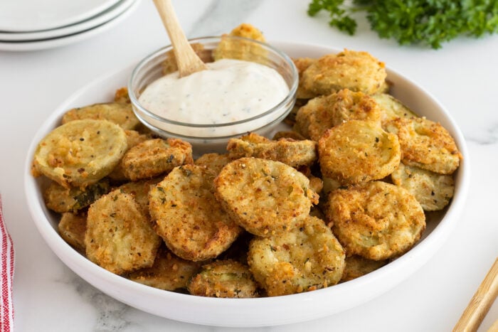 Deep-fried pickles, or frickles as they are sometimes called, are a popular diner classic that we all secretly wish we could serve with every meal. They are a fruit after all, even if they have been deep-fried!