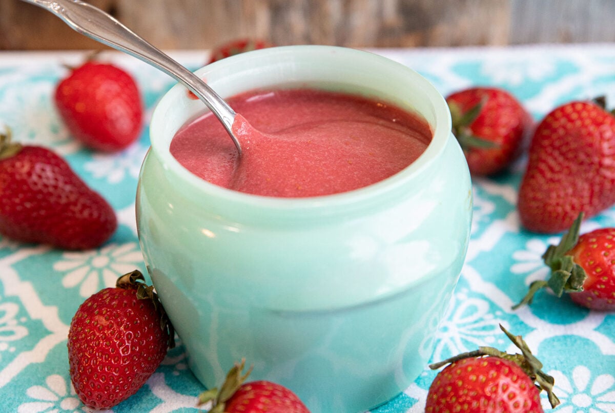 Sugar: Depending on the sweetness of your strawberries and your own personal preferences, you’ll need to adjust the precise amount of sugar that you add to this recipe. If your berries are sweet enough, you may even be able to skip sugar altogether, though it is part of what helps the pure thicken.